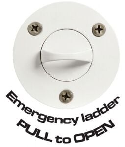 Gömme, 3 basamaklı acil durum merdiveni. Suya mukavim termopolimer yuvalı. Merdiven, naylon örgülü halattan ve yüksek dayanımlı termopolimer basamaklardan oluşmaktadır. Kullanımı gayet basittir: Sudaki kişi kiltleme kapağını çeker ve merdiveni yuvasından dışarıya doğru bırakır. 110 cm.