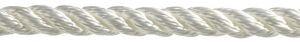 3 kollu, örgülü polyester halat. Bağlama ve demir halatı olarak kullanılabilir. Batar.