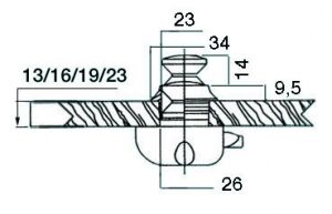 3836180 kilit için buton & halka. Delik Ø 26mm.Montaj İçin Uygun Panel Kalınlığı (mm) 13
