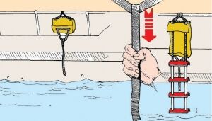 Vardaveleya monte edilir. Denize düşülmesi durumunda koruma kılıfının üzerindeki kayış çekilip merdiven açılarak tekneye tırmanılabilir. Tek başına seyir yapan denizciler için idealdir. Boy (cm) 94