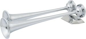 Marinco havalı korna, sarı üzeri kromaj. Korozyona uğramayan lexan® diyaframlı. Ses şiddeti 1 mt´de 121 db (a) boy: 43 cm.Volt 24V