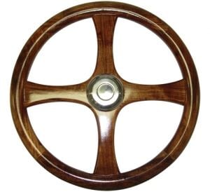 Ahşap dümen. Ø 46cm. Göbek kapağı paslanmaz çelik.