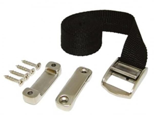 Akü sabitleme kemeri. AISI 316 paslanmaz çelik bağlantı elemanları ve tokası. 96 cm boyunda 25 mm eninde kayışlı.