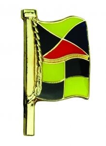Uluslararası işaret bayrağı kodlarını kullanarak gizli anlamlar gösteren altın kaplama ve mineli rozet.