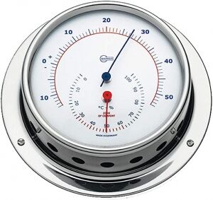 Sky ürün serisindeki yüksek kaliteli yüzeyler fırçalanmış paslanmaz çelikten yapılmıştır. Kasanın klasik kadranlarla uyumu mükemmeldir.Model Termo-Higrometre