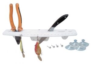 Ağır hizmet amaçlı üretilmiştir. UV dayanımlıdır, marin sınıfıdır. Bıçak yuvası olarak kullanılabilir, pense konabilir, sahte balık asılabilir. Vantuz montajlı. Raf boyu 35 cm.