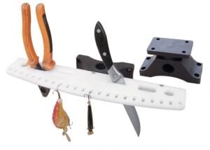 Ağır hizmet amaçlı üretilmiştir. UV dayanımlıdır, marin sınıfıdır. Bıçak yuvası olarak kullanılabilir, pense konabilir, sahte balık asılabilir. Yana veya Ø 22/25 mm vardavelaya monte edilebilir. Raf boyu 35 cm.