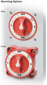 Blue Sea Systems 9001E akü şalteri. Kıvılcım yapmaz. Gömme veya yüzeye montaj olabilir.