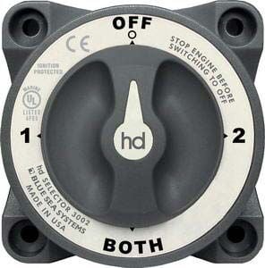 Blue Sea System akü şalteri. Ağır hizmet tipi. Kıvılcım korumalıdır, benzinli motorlu teknelerde de güvenle kullanılabilir. Sürekli 500A. Anlık 1750A. (25sn). Maksimum 12/24V D.C. Güçlendirilmiş polikarbonat gövde. Kalay kaplı bakır terminaller.