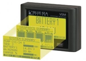 VSM'de bir sintine veya tank monitörü olarak yapılandırılabilen iki giriş bulunur. Bir sintine girişi olarak yapılandırıldığında, izleme işlevleri arasında pompa aktif, son 24 saatteki çevrim sayısı, tipik bir 24 saatlik dönemdeki ortalama çevrimler ve toplam çevrimler bulunur. Yükseklik alarmları hem son saatteki çalışma süresi dakikaları hem de son 24 saatteki çevrim sayısı veya sayısı için ayarlanabilir. Tank girişi olarak yapılandırıldığında, tank durumu hem kapasite (galon veya litre) hem de kapasite yüzdesi olarak gösterilebilir. Özel tank şekilleri otomatik olarak kalibre edilebilir veya programlanabilir. Tüm tanklar için hem yüksek hem de düşük seviye alarmları ayarlanabilir.