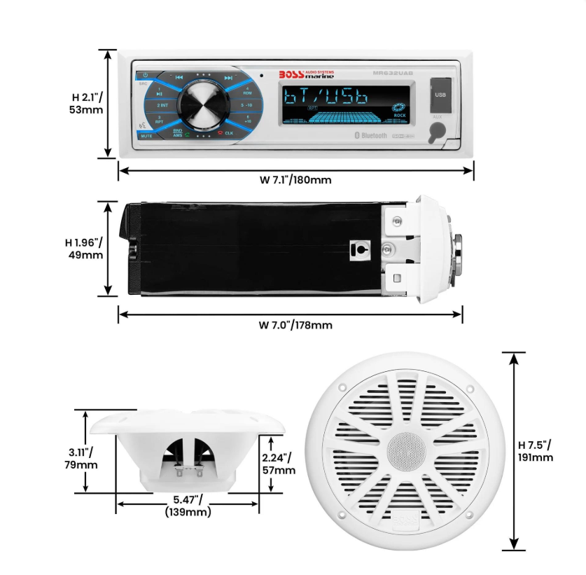 BOSS Audio Systems MCK632WB.64 Marin Teyp ve 6,5” Hoparlör Seti - Bluetooth, USB, AM/FM