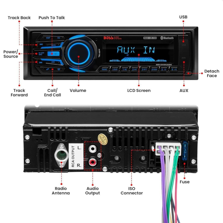 BOSS Audio Systems MR1308UABK, tekne ve marin kullanım için tasarlanmış, dayanıklı ve çoklu medya destekli bir marin teyptir. Bluetooth bağlantısı sayesinde kablosuz müzik dinleme ve hands-free arama imkânı sunar. USB, SD kart ve AUX girişleri ile farklı kaynaklardan müzik oynatılabilir. Çıkarılabilir ön paneli ve marin koşullara uygun yapısı ile güvenli ve uzun ömürlü kullanım sağlar.
