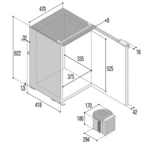 Vitrifrigo buzdolabı. C75L. Kompresör ünitesi demonte edilerek dolabın 1.5 mt uzağına konabilir.