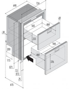 Vitrifrigo Buzdolabı. DW210 OCX2 RFX. Çekmeceli tip. Paslanmaz çelik kapak ve çerçeveli.