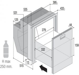 12/24V DC. Çekmeceli Model. Paslanmaz çelik kapı ve çerçeveli.