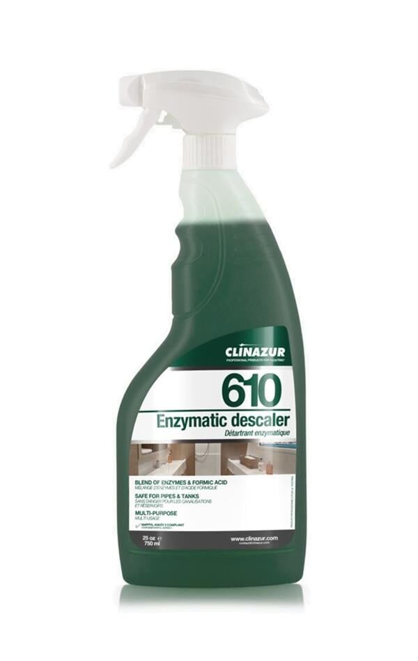 Clin Azur'da, banyo ve tuvaletlerin günlük bakımı için 610'u, yeşil, eko-güvenli bir kireç çözücü olarak geliştirdik. Hafif, hoş kokusu ile mutfak (galley), banyo ve tuvalet temizliği ve kireç çözme işlemleri için kullanıcı açısından mükemmel güvenli bir üründür.