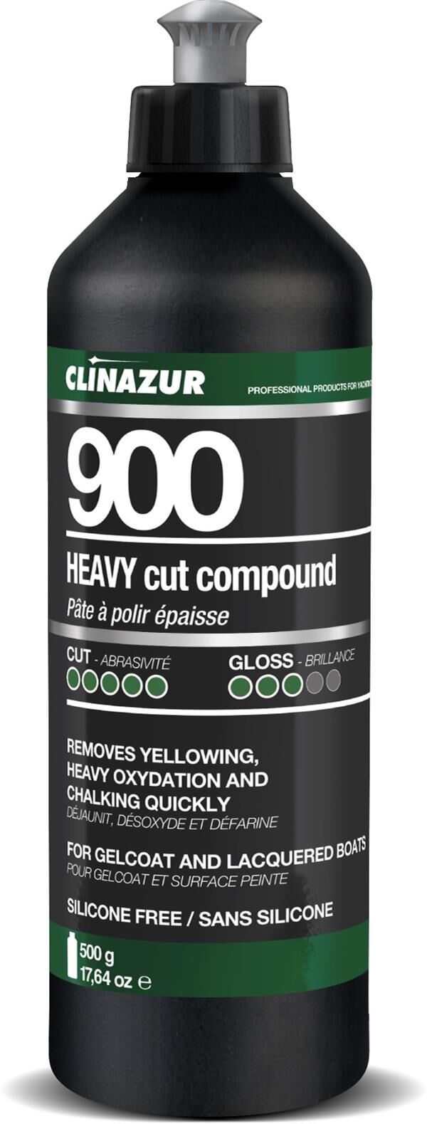 Clin Azur 900, 900 cila serimizin ilk ürünüdür. Boya işlerini ve jelkotu (gelcoat) restore eden kalın kesim polisaj pastasıdır.