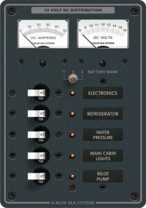 Blue Sea Systems DC 5 pozisyonlu sigorta paneli. 12V DC. 190x133mm. 30 adet DC etiket.