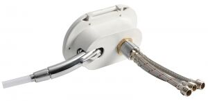 Duş ve yuva, 4 metre hortumlu. Dışarı doğru 2 cm çıkabilen teleskopik, sıcak - soğuk mikserli. Dikey veya yatay monte edilebilir.