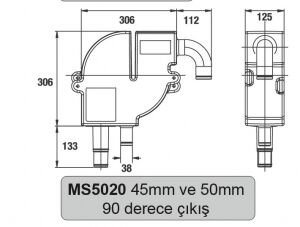 Çıkış 45-50 mm 90 derece çıkış