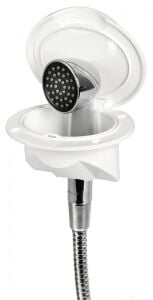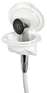 Osculati Nuvola. AISI316 paslanmaz çelik dekorlu plastik gövde. Düz veya dikey montaj için 45 ° eğimlidir. Keji büyük boy duş başlığı ile donatılmıştır.Hortum Inox