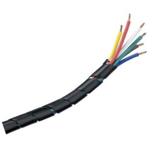 Kablo spirali. Tel ve kabloları sürtünmeye karşı korur. 76 °C´ye kadar mukavimdir. Alevi yavaşlatıcı özelliktedir. Siyah, 3 metre.Ø 19 mm