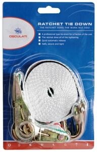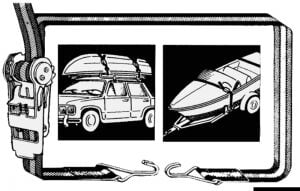 Kayışlı gergi. Kayış 25 mm güçlendirilmiş polyester, gergi mekanizması ve kanca galvanizli çeliktir.Boy 600 cm