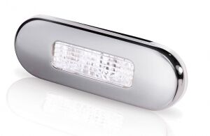 Hella Marine Ledli merdiven lambası. İç mekanlarda veya su geçirmez özelliği sayesinde dış mekanlarda da kullanılabilir. Kapağı paslanmaz çeliktir. UV ışınlarına, darbelere ve titreşime mukavimdir. Multivolt (10-33V DC). Sadece 0.5W enerji tüketir.Led Soğuk Beyaz