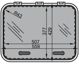 Akrilik cam 10 mm kalınlığında ve koyu duman renklidir. İç finisyon çerçevesi ve sineklik opsiyonel ekipman olarak sunulmaktadır.İçten içe 507x377mm