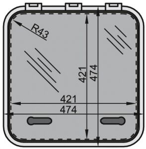Akrilik cam 10 mm kalınlığında ve koyu duman renklidir. İç finisyon çerçevesi ve sineklik opsiyonel ekipman olarak sunulmaktadır.İçten içe 421x421mm