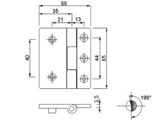 Menteşe, sarı üzeri kromaj. 65x54mm. Asimetrik Kanatlı. Kısa kanat 14.5mm.