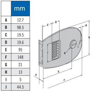 Mobella sürgü kapı kilidi,watertight. Model Flush. 10-12,7mm kalınlığındaki dış mekan kapıları için. Gömme tip kilit tasarımı ile öngörülen kalınlıkta kapılara kolayca monte edilir. Güvenlik sistemi ile kapının içeriden kilitlenmesi engellenmiştir.Tip Paslanmaz çelik (Oval)