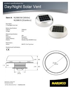 Solar hücreler şarjlı pili 24 saat sürekli çalışmak üzere şarj eder. Piller tam dolu olduğunda hiç güneş ışığı olmasa da havalandırmayı 48 saat çalıştırır. İki pervane ile sunulur; ihtiyaca göre bunlardan emme veya basma yapan tipi kullanılabilir. Beyaz, sert abs plastik gövdelidir. Hiç bir kablo bağlantısı gerektirmez. Yüksekliği 51 mm´dir.Kapasite 23m³/saat