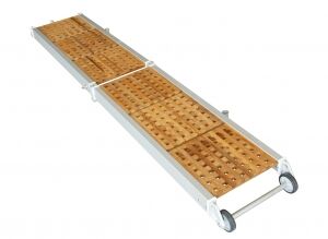 Pasarella, anodize alüminyum. Ahşap yüzeyi deniz şartlarına mukavimdir.