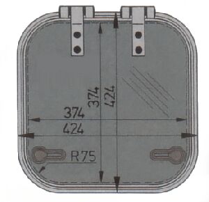 Vetus hatch. Tip Planus. Anodize alüminyum çerçevesi 75 mm köşe açılıdır. Camı 10 mm duman rengi akriliktir. İç finisyon çerçevesi ve sineklik opsiyonel ekipman olarak sunulmaktadır. Tip PLA40