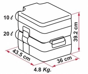 Portatif tuvalet. Pis su tankı kapasitesi 20 L.Üst Tank (Temiz Su) Kapasitesi 10 Litre