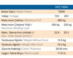 Deniz koşullarına tamamen uyumlu AISI 316 paslanmaz çelik, alüminyum, kromaj ve kompozit malzemelerden mamuldür. Üstün kalitesi ve mükemmel dizaynı ile uzun süre servis gereksinimi duymayacak şekilde tasarlanmıştır. CE onaylıdır. Opsiyonel zincir sayacı bağlantısı için gerekli sensör ırgat üzerine standart olarak monte edilmiştir. Solenoid ve vinç kolu standart ekipmanlardır.