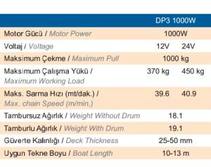 Deniz koşullarına tamamen uyumlu AISI 316 paslanmaz çelik, alüminyum, kromaj ve kompozit malzemelerden mamuldür. Üstün kalitesi ve mükemmel dizaynı ile uzun süre servis gereksinimi duymayacak şekilde tasarlanmıştır. CE onaylıdır. Opsiyonel zincir sayacı bağlantısı için gerekli sensör ırgat üzerine standart olarak monte edilmiştir. Solenoid ve vinç kolu standart ekipmanlardır.