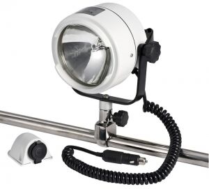 Projektör. Beyaz ABS gövdeli, alüminyum ve paslanmaz çelik ayaklı, Ø 22/25 mm vardavelaya montaj.