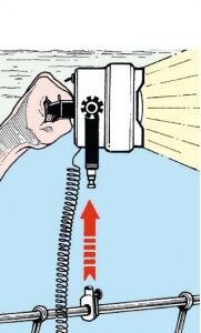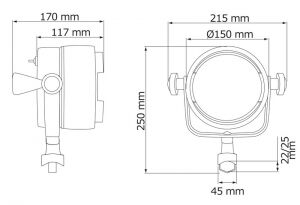 Braketten çıkarılarak el projektörü olarak da kullanılabilir. Açma kapama butonu su geçirmezdir. Projektör çapı 150 mm´dir. Spiralli kablosu 2 metreye kadar uzayabilir. Çakmak tipi priz braketiyle sıva üstü montaj yapılabilir veya braketten çıkarılarak gömme monte edilebilir.