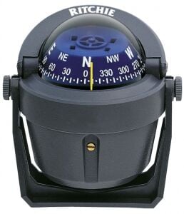 Ritchie Sport B-51 pusula. Ayarlanabilir braketli, yüksek hassasiyetli, mavi kadranlı, aydınlatma ve kompansatöre sahiptir.
