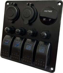 Siyah alüminyum çerçeveli. On-Off ledli anahtarlar ve resetlenebilir otomatik sigortalarla donatılmıştır. Etiket seti dahildir. DC 12V.
