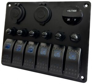 Siyah alüminyum çerçeveli. On-Off ledli anahtarlar ve resetlenebilir otomatik sigortalarla donatılmıştır. Etiket seti dahildir. DC 12V.