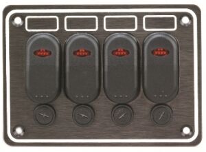 Sigorta paneli, dörtlü, su geçirmez. 95x133 mm siyah alüminyum panel.