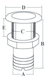 Firar, oval dış yüzey. AISI 316 paslanmaz çelik gövde, plastik somun. Aynı ebattaki dış yüzeyle altı farklı hortum bağlantı ebadı.A(mm) 16