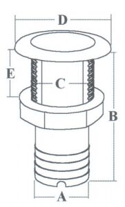 Firar, oval dış yüzey. AISI 316 paslanmaz çelik gövde, plastik somun. Aynı ebattaki dış yüzeyle altı farklı hortum bağlantı ebadı.A(mm) 19