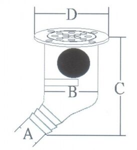 Su gideri. AISI316 paslanmaz çelik. Polisajlı, parlak kapak. Tek yönlü top çek-valfe sahiptir. Standart anahtar ile kapak çıkartılarak temizlik yapılabilir. Tip 95º