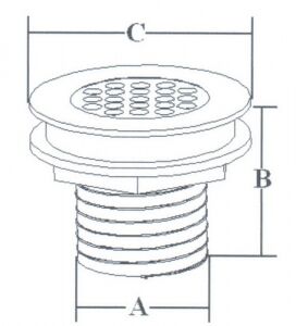 Southco su gideri. Pasolu. AISI 316 paslanmaz çelik. Lavabo, duş, güverte gideri olarak kullanılabilir. A(mm) 25