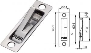 Sürgü kapı stoperi. Kolayca basılarak stoper dışarı çıkarılır. Parlak polisajlı, kusursuz kalitede döküm AISI 316 paslanmaz çelikten üretilmiştir.