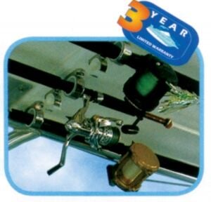 AISI 316 paslanmaz çelik. Beyaz polietilen tabanlı. Çok yönlü yapısıyla yatay, dikey ya da baş üstü monte edilebilir.